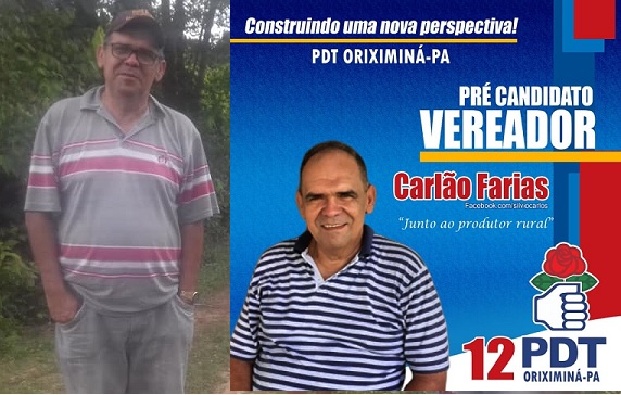 Bombeiro Civil e atual diretor de abastecimento do Município de Oriximiná Estado do Pará, filiado ao Partido Democrático Trabalhista PDT) Silvio Carlos Farias afirmou que é pré-candidato a Vereador nas próximas eleição de outubro de 2020. Com uma larga experiência na administração pública e sindical, Carlão Farias como é carinhosamente chamado pelo seus amigos e admiradores, é o mais bem preparado pré-candidato nesta eleição. Ao amigo Carlão Farias lhe desejo sucesso.